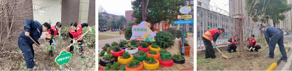 城(cheng)市(shi)服務(wu)集(ji)團(tuán)團(tuán)總支與項(xiang)目(mu)團(tuán)隊(duì)組成(cheng)的(de)“綠色先(xian)鋒”,在(zai)紫澄花(huā)園、中(zhong)城(cheng)上品(pin)項(xiang)目(mu)開展(zhan)“手‘植’春意,共‘樹’未來”活動(dòng)。志(zhì)願者們揮鍬鏟土,扶苗培土,共同爲(wei)社(she))區(qu)增添新(xin)綠。